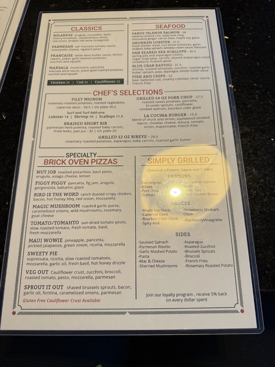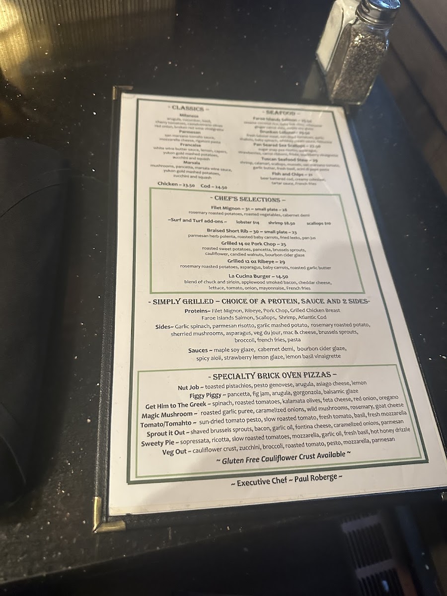 Lemon, roasted tomatoes, white wine, basil, parsley, roasted garlic butter, grilled focaccia bread